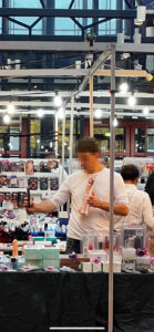 Die Halle, die Mann als Erstes betritt, wenn man reinkommt, sieht schon mächtig aus. Von da aus kann man in die 3 anderen Bereiche abbiegen. Wer es laut will, biegt rechts ab und befindet sich in der Halle mit den Camgirls, die richtig auf den Putz gehauen haben, aber dazu später mehr. Links ging es schon etwas ruhiger zu. Dort befanden sich Aussteller für diverse Sextoys, einer Orgasmushypnose und na, wie nicht anders zu erwarten, diverse chinesischer, teilweise hochwertiger Sexspielzeuge. Und auch das braucht man auf so einer Messe, Essen und trinken.