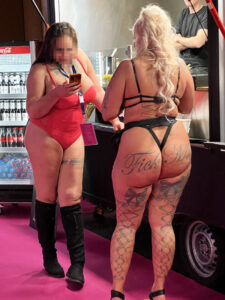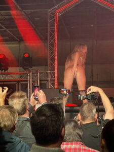 Wie Ihr lesen könnt, wenn Ihr überhaupt bis hier hergekommen seid, wird auf der größten Erotikmesse in Deutschland eine Menge geboten. Live Action, die es so in der Form früher nicht gab. Da wurde FSK 18 Sachen noch im Verborgenen in kleinen Kabinen gezeigt. Heute ganz öffentlich auf der großen Bühne und fast anfassbar. Das ist natürlich nicht erlaubt. Die Besucher auf der Messe sind bunt gemischt und wir würden behaupten, 85 Prozent Männer, 10 Prozent Frauen und 5 Prozent, die das sind, was sie sein wollen und sich selbst aussuchen, was sie sind.